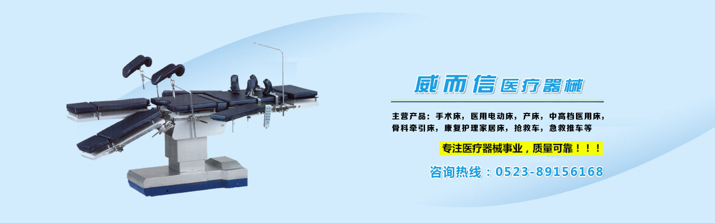 公司主要產品有:手術床,醫用電動床,產床,中高檔醫用床,骨科牽引床,康復護理家居床,搶救車,急救推車,醫用器械車,臺,藥品柜,護士站,陪護椅,輸液椅,中心供氧,負壓吸引,呼叫系統工程,護士站工程等產品。